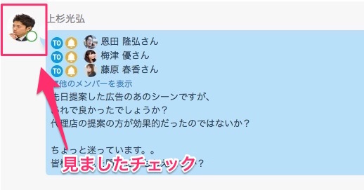 「見ましたチェック」は、送信者のアイコンの右下に表示されます。